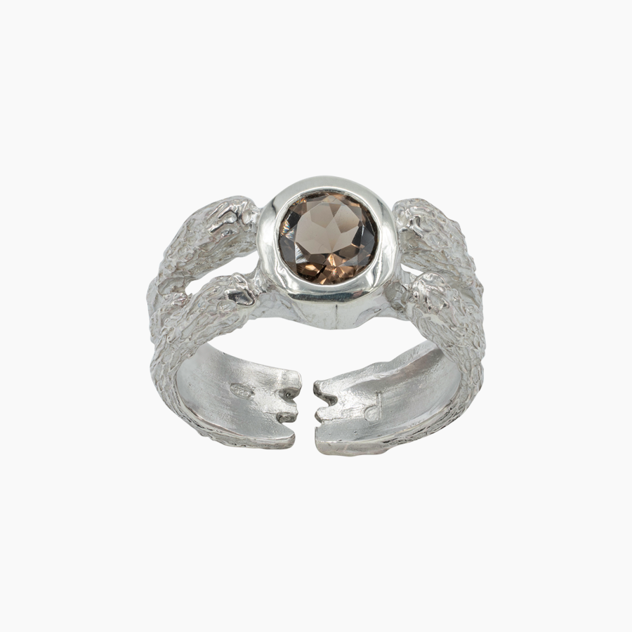 Una reinterpretazione del classico solitario secondo l’estetica di P/EFFE. Linee essenziali, lavorazione artigianale e una pietra naturale incastonata al centro.